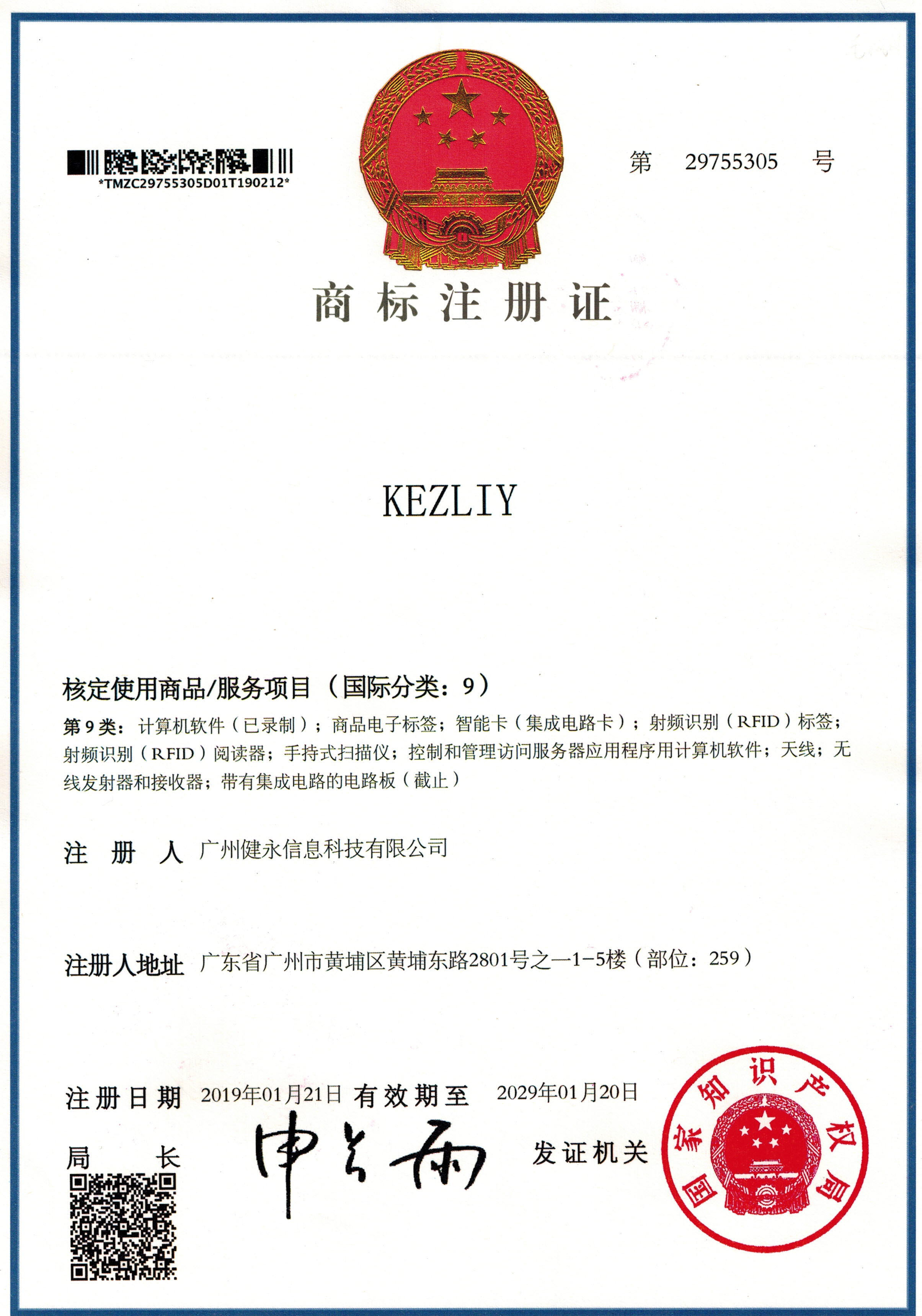 《商標(biāo)注冊證》是國家商標(biāo)局依照《商標(biāo)法》的有關(guān)規(guī)定,頒發(fā)給商標(biāo)注冊人以證明其商標(biāo)專用權(quán)范圍的法律文書,在全新的一年,廣州健永完成了新的產(chǎn)品研發(fā),多項實用新型專利和軟件著作權(quán),研發(fā)產(chǎn)品通過了CE認(rèn)證,成...