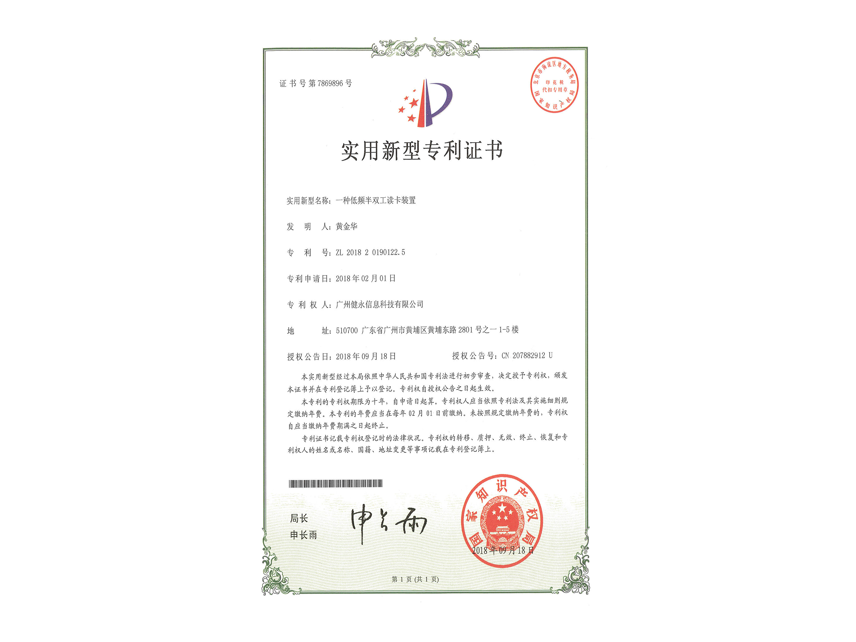 2018年9月18日,廣州健永成功獲得了國(guó)家知識(shí)產(chǎn)權(quán)局核發(fā)的《實(shí)用新型專利證書》,實(shí)用新型名稱為“一種AGV地標(biāo)傳感系統(tǒng)”。