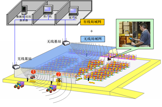 下圖是一個(gè)典型的無(wú)線倉(cāng)儲(chǔ)系統(tǒng)網(wǎng)絡(luò)設(shè)計(jì)方案,用戶需要在現(xiàn)有的有線(局域)網(wǎng)絡(luò)基礎(chǔ)之上將其延伸至倉(cāng)庫(kù)現(xiàn)場(chǎng),使得無(wú)線網(wǎng)絡(luò)信號(hào)通過(guò)接入點(diǎn)的部署覆蓋需要的區(qū)域,現(xiàn)場(chǎng)操作者使用移動(dòng)終端設(shè)備可以實(shí)時(shí)與后臺(tái)系統(tǒng)進(jìn)行數(shù)...